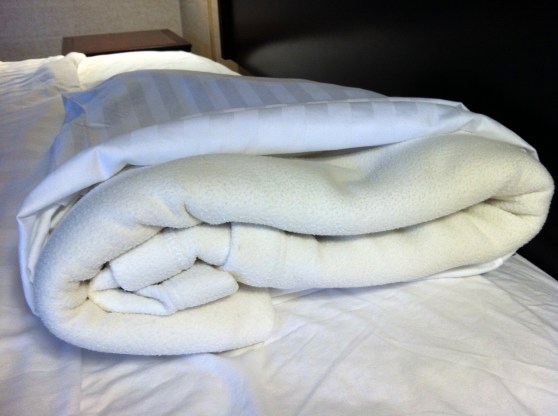 In the hotel room, I experimented and tweaked it. I found that with a different blanket, and a different way of folding it, I could mimic the shape and firmness of my ergonomic pillow at home.