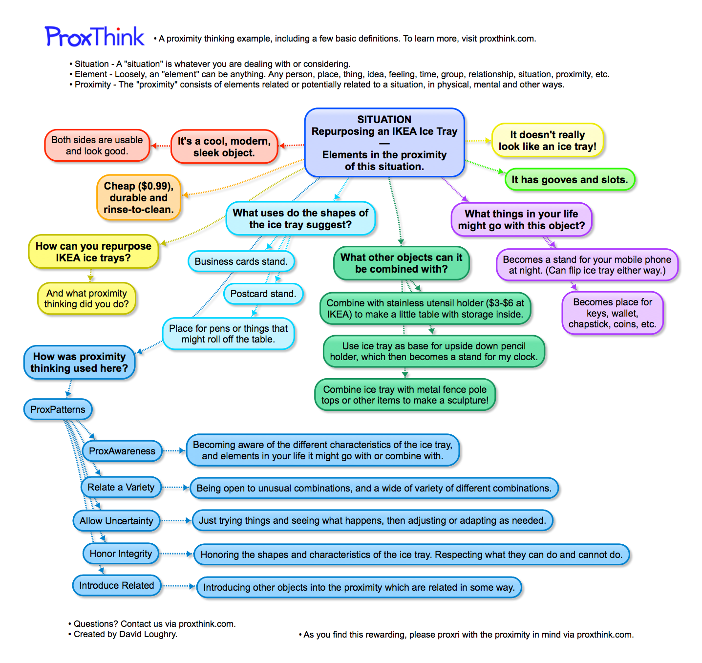If you explore the proximity thinking (ProxThink) framework and the Shared Situation Guide, you’ll learn more about and use the concept of proxri, briefly introduced above. You’ll also see that the framework and Shared Situation Guide are offered via proxri. Proxri in practice are sort of like the give and take of a neighborhood, relationship, friendship or perhaps being a considerate traveler. How do you proxri? Basically, you consider the proximity, including your benefits, your circumstances, the other party’s circumstances, and some wider context, and then proxri as appropriate. A proxri may include money, things, services, ideas, tasks, relationships, actions, and so on, as well as a combination of these. So a proxri to me for the framework and guide might also be a referral, consulting or speaking engagement, teaching gig, grant, or other opportunity. In addition, I’ve created a collaboration deal so that people who collaborate on or improve the framework and guide can get proxri. If you think my work might be, or is, useful, interesting or has potential, please consider a proxri for it. You can find out more about my circumstances via this ProxMonitor. You can learn more about proxri here. You can make financial proxri here or via the proxri links on most any page of proxthink.com. As far as non-financial proxri, you can let me know about them by contacting me via the contact methods mentioned below.